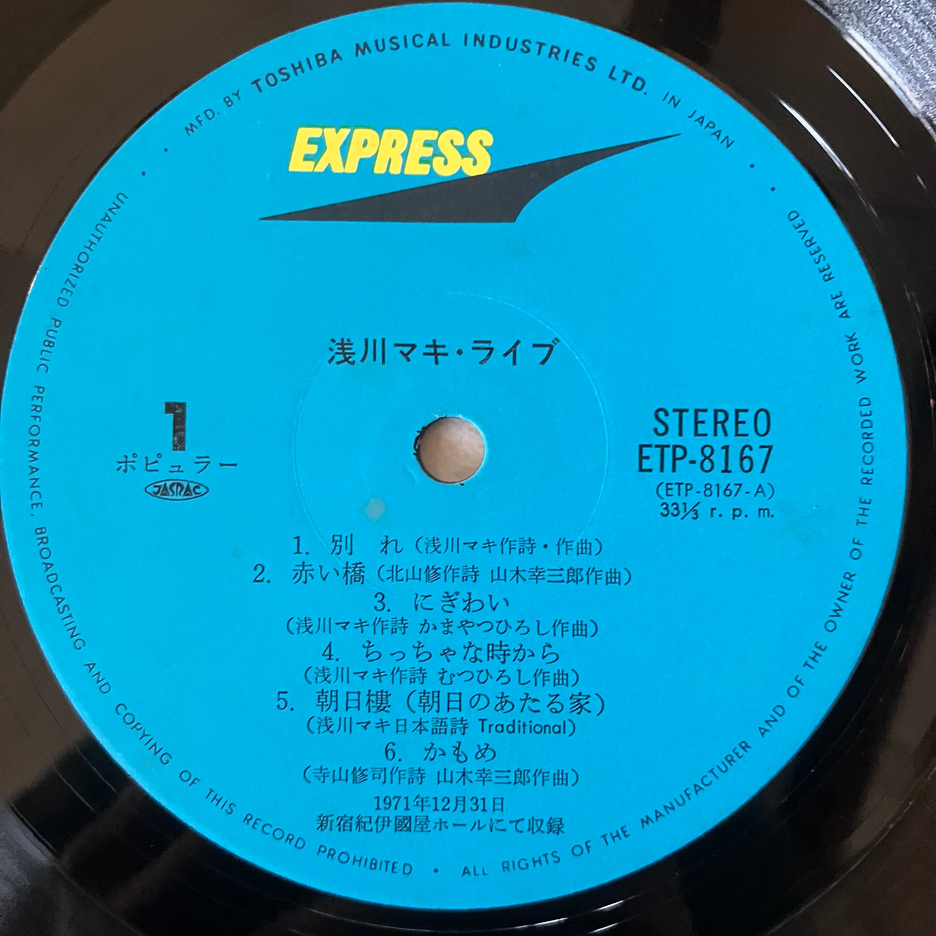 1971年12月31日新宿紀伊國屋ホールでのLIVE盤。