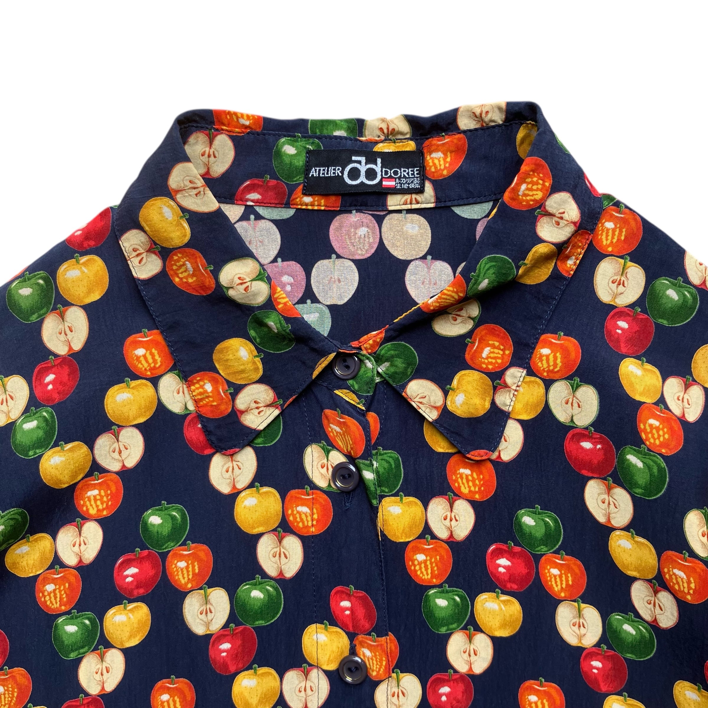 ネイビーバックにリンゴ柄